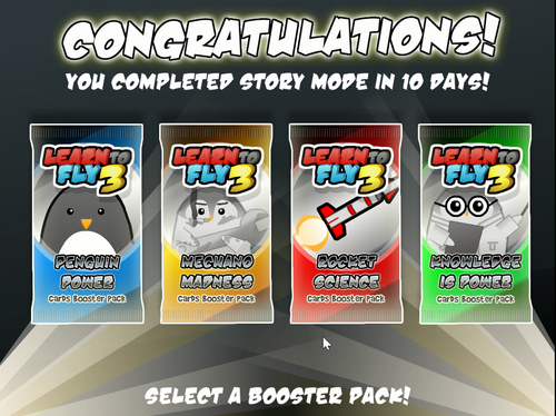 The Booster Pack choice after a completed game.